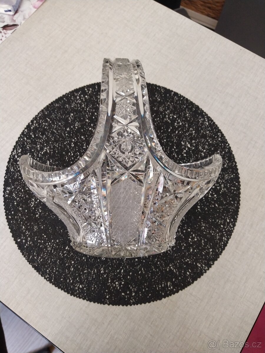 Krásný křišťálový košík - [6.2. 2026]Jedná se o broušený olovnatý křišťálový košík, z československé výroby, s následujícími vlastnostmi: