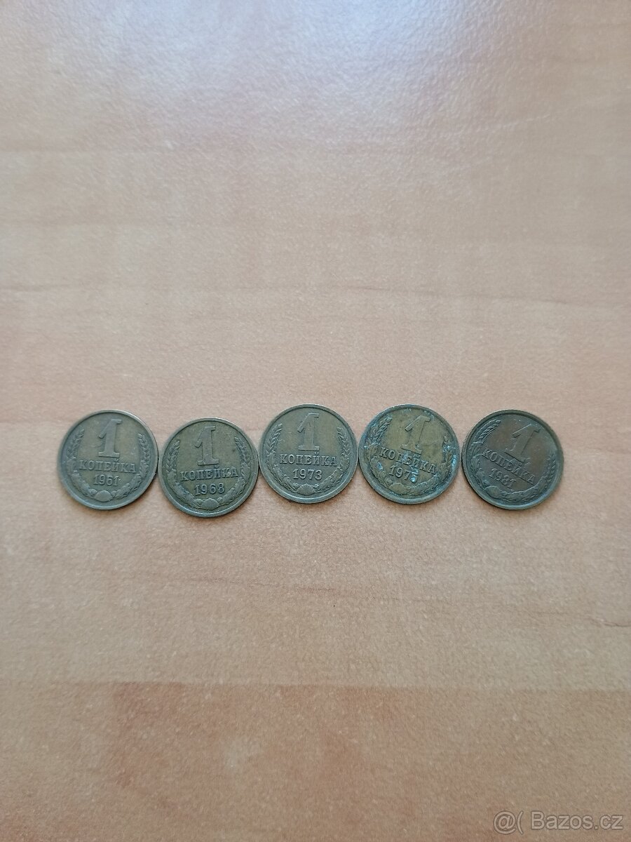 1 kopejka 61,68,73,75,81 a20,- ,3 kopejky 1961,70,71 a 20,- , 5 kopejek 1961,62,77 a20,- , 10 kopejek 1957,61,74,77,2006 a15,- , 15 kopejek 1961,62,79 a 15,- , 20 kopejek 1961,62 a25,- , 50 kopejek 1964 30,-,celek ještě levneji