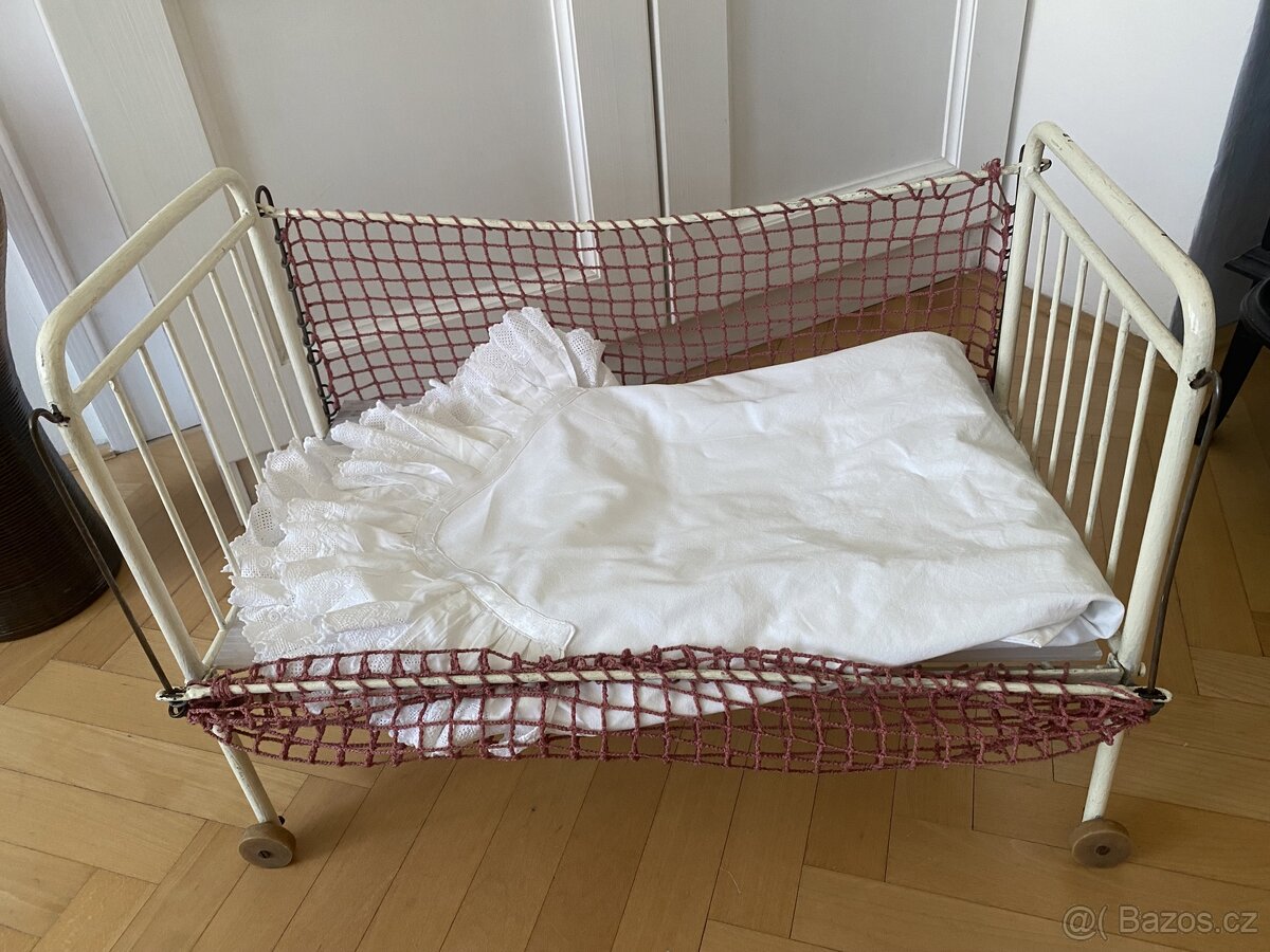 Pro panenku. Kovová s výpletem - originál. Rozměr postýlky 62x38 cm,