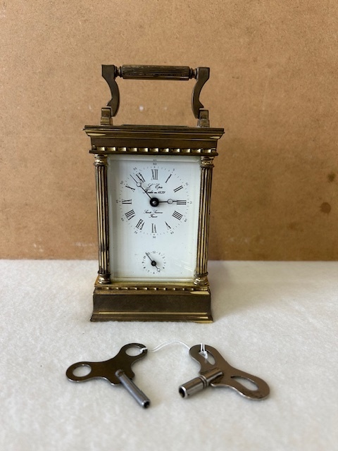 Originál starožitný mosazný budík v původním hezkém stavu. Budík má zabrušované skla, stroj vyčištěn od hodináře a je funkční. Signatura na číselníku i na stroji, vše viz. foto. Výška s uchem 16 cm, šířka 7,5 cm, hloubka 6,5 cm. Prohlídka možná, více info. na 773 258 444.