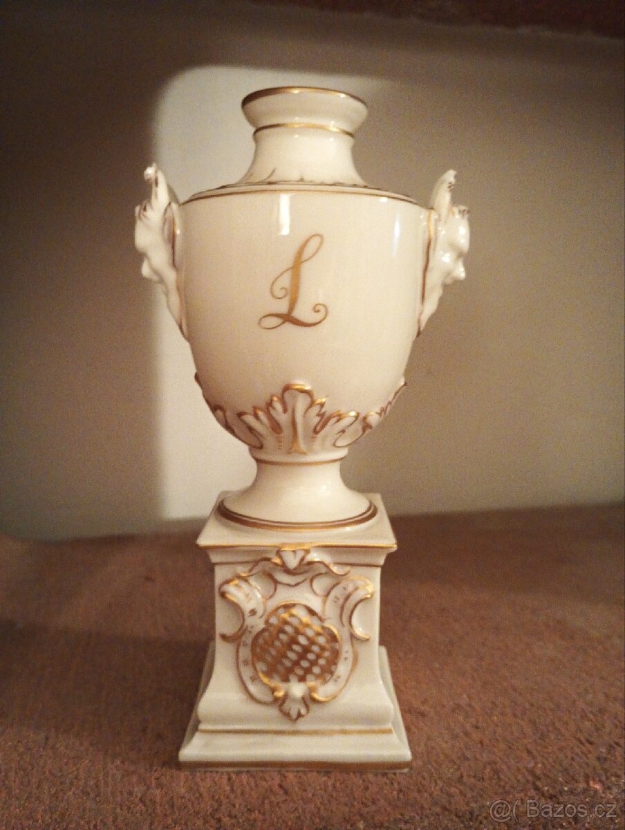 Stará vázička ve tvaru amfory značená vtlačenou značkou Nymfenburg.