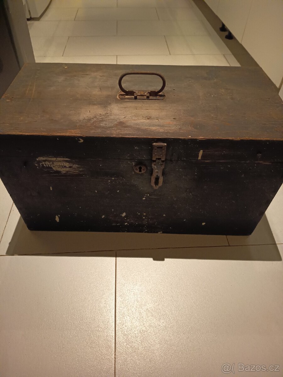 Starožitný vojenský kufr - [12.2. 2026]Prodám hodně starý starožitný kufr po pradedeckovi ,s vnitřní přihrádkou, vyndavaci