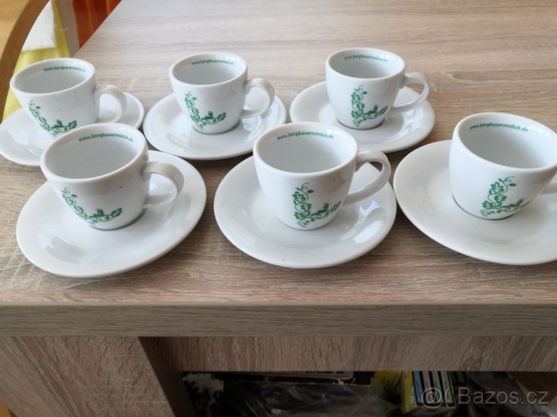 Kávová souprava - nová - [12.3. 2026]Prodám kávovou soupravy na moka kávu zn. ASA, barvy tmavě zelené. Nová. Na spodní straně talířků i velkého je lepidlo z nějakého štítku - viz foto.