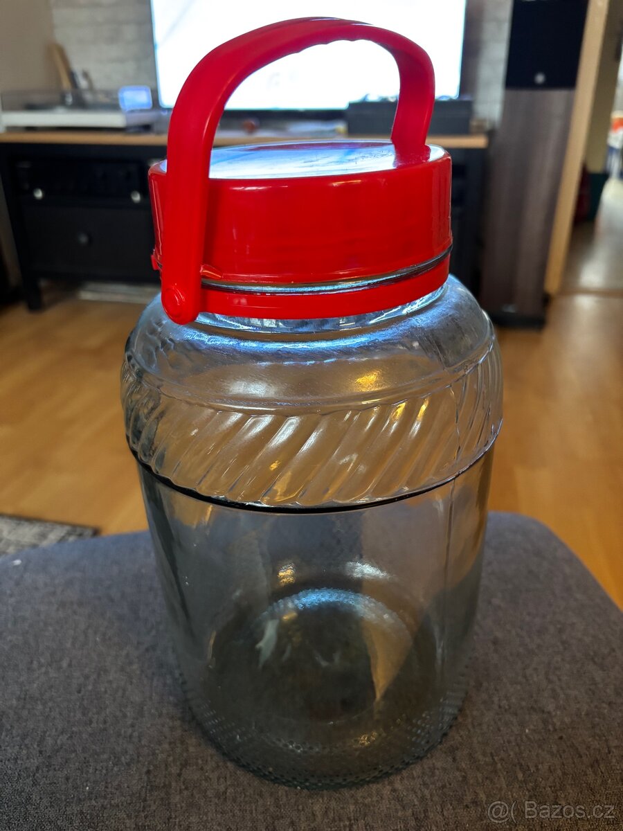 Skleněná dóza s kovovou pokličkou a vloženou sklenicí - [26.3. 2026]Nabízím skleněnou dózu s kovovou pokličkou a vloženou skleničkou.