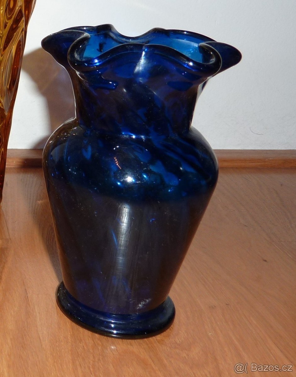 1. tmavomodrá váza s vlnitým okrajem, výška 18cm