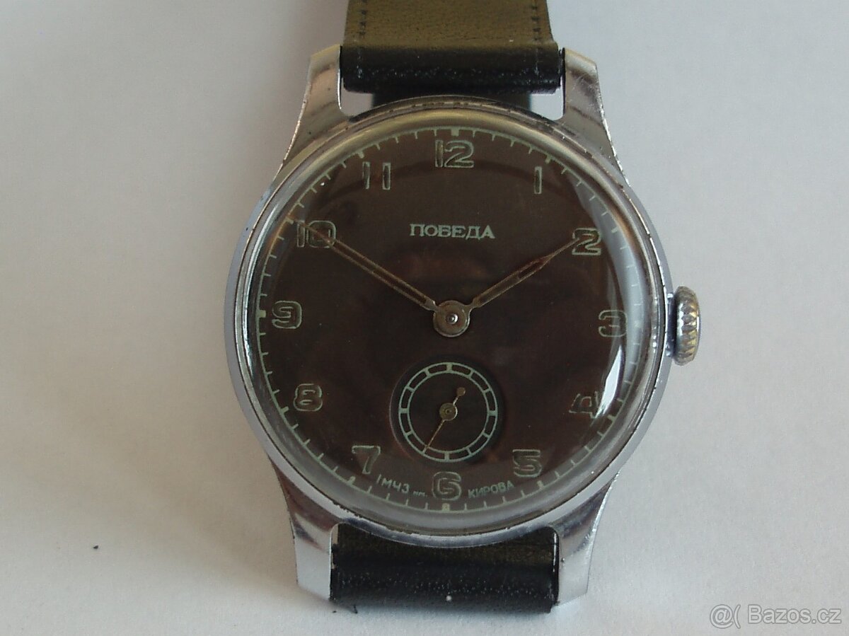 Hodinky Pobeda SSSR černý ciferník, originál vintage - [26.2. 2026]Retro hodinky Pobeda (SSSR), cca 1950–60. léta.