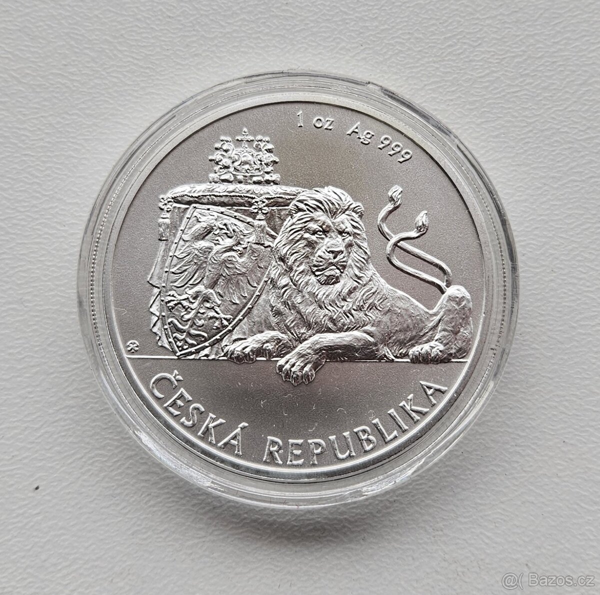 Prodám investiční stříbrnou minci 1oz Český lev 2019. 31.1g, ryzost 999.