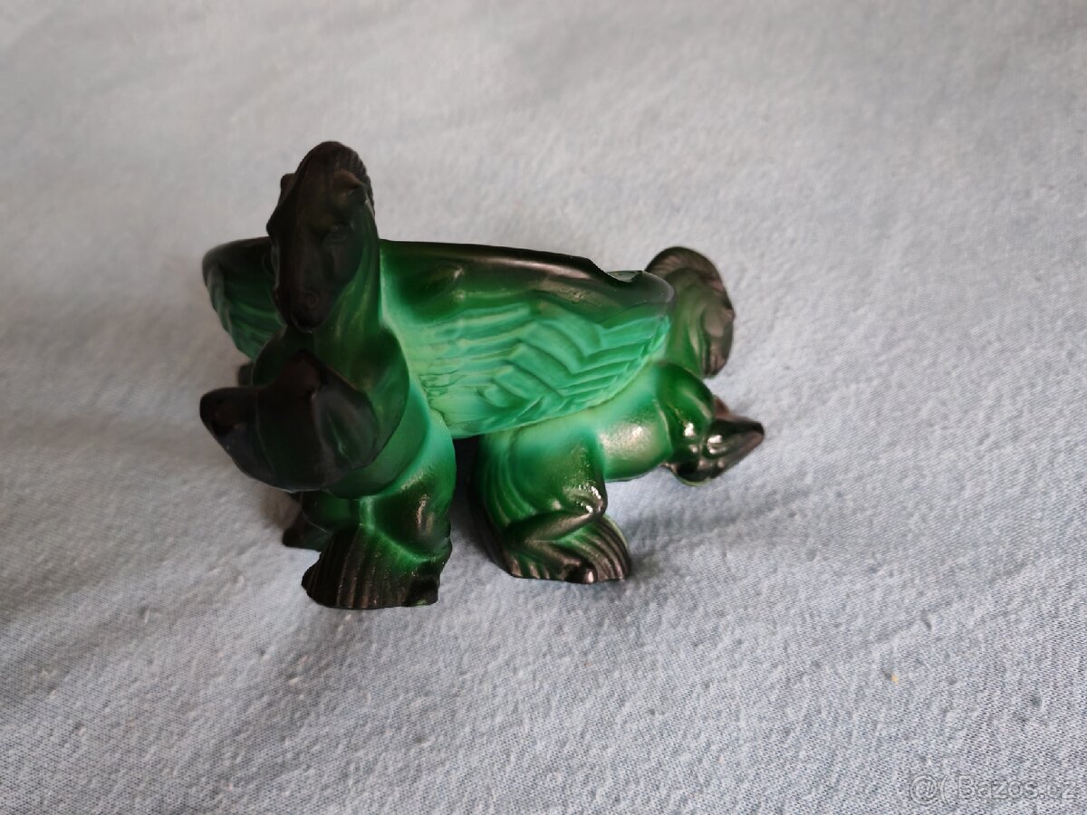 Popelník Pegasové,Jade sklo malachit.