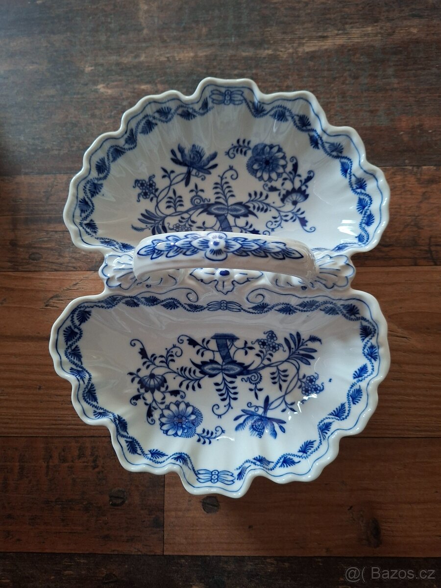 Prodám cibulový porcelán - dvoudílný kabaret, nepoužívaný, pouze vystavený, bez poškození. Signatura orig, Dubí. Podívejte se, prosím, i na mé další inzeráty. děkuji
