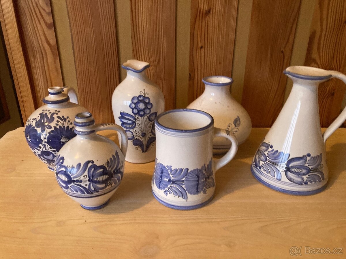 Sada bílo modré keramiky