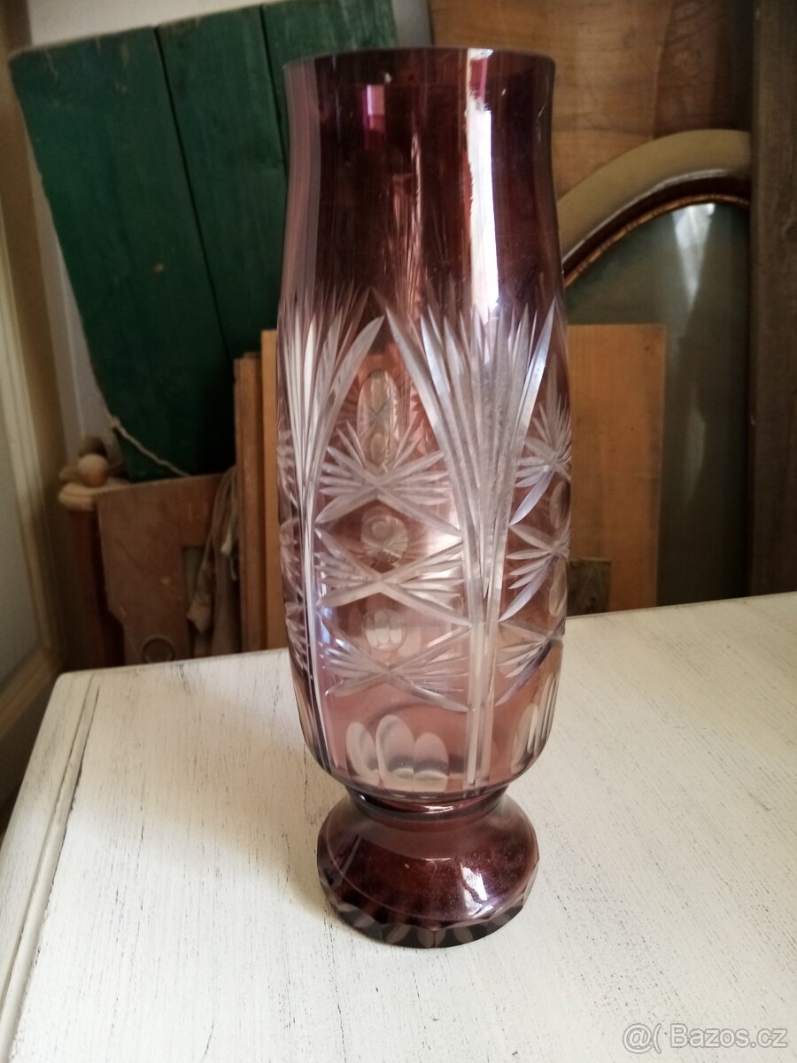 Váza broušené sklo, hutní sklo
