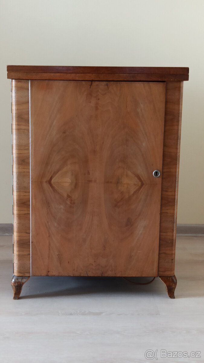Prodám plně funkční a zachovalý skříňový starožitný šlapací šicí stroj Central-Bobin MINERVA M16 s ústřední cívkou po prvním majiteli zakoupený v roce 1940. Skříň šicího stroje je vybavena integrovanou přídavnou sklopnou pracovní plochou, která rozšiřuje základní pracovní plochu o rozměr 59,5 x 48 cm. Šicí stroj má bohaté příslušenství, které umožňuje kromě základního i rozličné speciální druhy šití například obrubování s pomocným pravítkem, řasení, lemování, dopředné i zpětné šití s proměnnou a aretovatelnou délkou stehu a dále pak vyšívání, štepování atp. Mechanika šicího stroje je celokovová robustní konstrukce. Výrobcem je zaručeno šití jak velmi jemného plátna, tak i tlusté látky. Vše je podrobně popsáno v přiloženém návodu. Po sklopení šicí hlavy do skříně a přiklopení rozšiřitelné pracovní plochy má skříň kompaktní rozměry 59,5 x 48 x 81,5 cm (šířka x hloubka x výška) bez jakýchkoliv výstupků. Uvítám Vás osobně ve Vratimově. Dohoda možná.