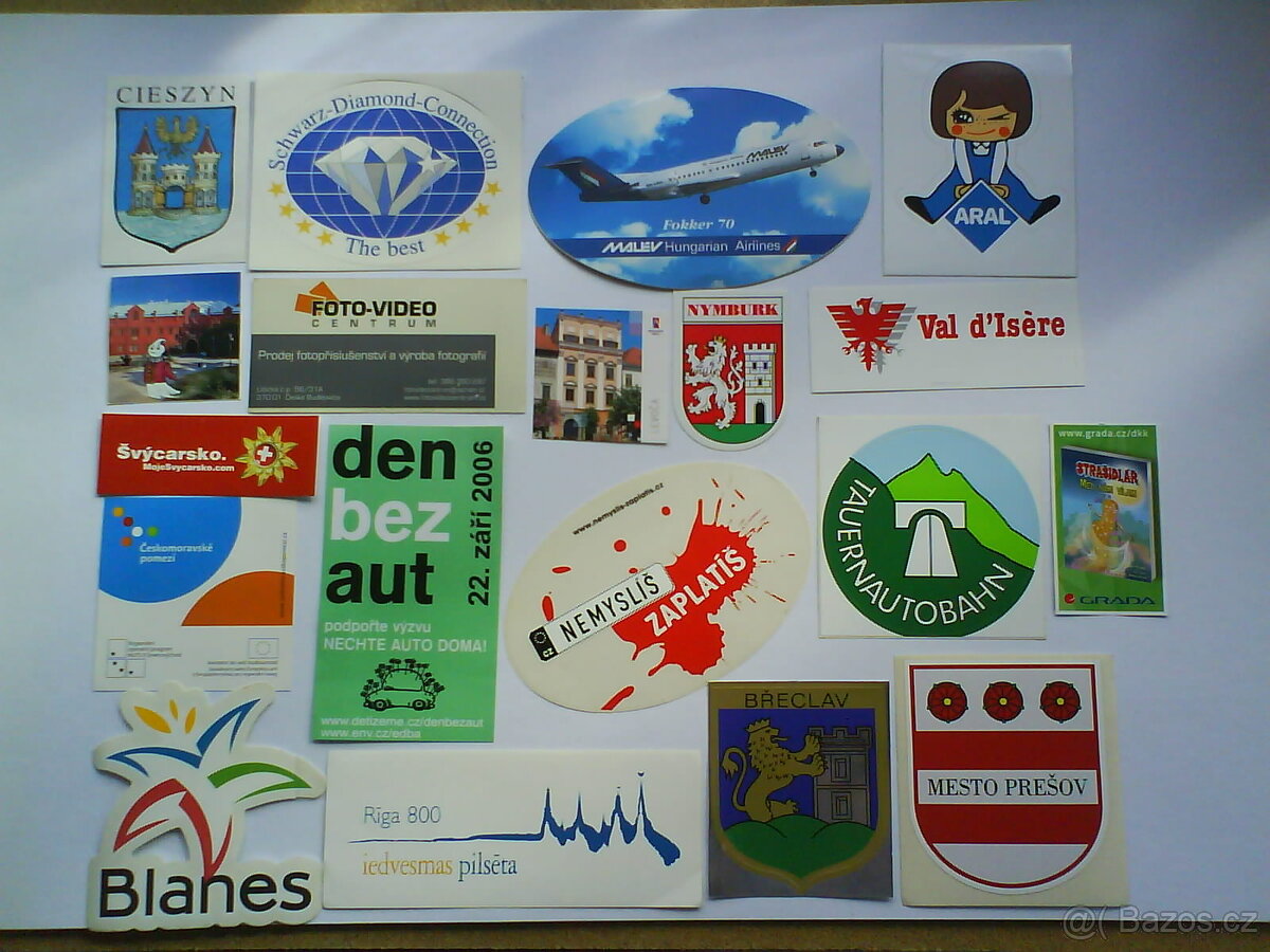 Nabízím samolepky. Možné poslat poštou při platbě předem nebo osobní předání PT, ST, Volyně, někdy i Tábor, o nedělích Blatná, Radomyšl a místa mezi městy. Celkem za 100 Kč.