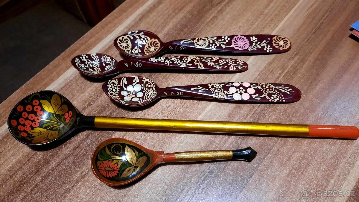 Prodám staré, dřevěné lžíce, ručně malované. 5ks