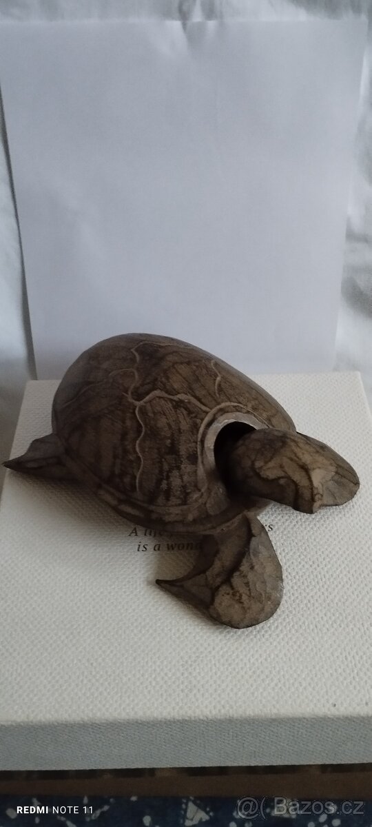 Nabízím k prodeji krásnou ručně vyřezávanou starožitnou dřevěnou želvu, přivezeno z cest po Indonésii, odklápěcí krunýř s kruhovou miskou, může sloužit například k uchovávání drobností. Rozměry cca 19 x 5 x 12cm. Nádherná dekorace neváhejte