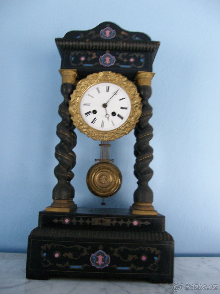 Prodám hodiny vykladané mosazi a perleti.Bez uprav.Funkční.