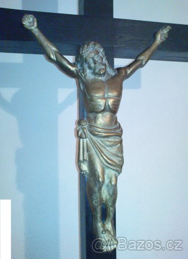Prodám kříž vhodný do kostelů a domů smutku. Rozměry výška 2,36m podstavec 0,53m x 0,53m, použité materiály umučení a kovové odlitky bronz, dřevo- dub.