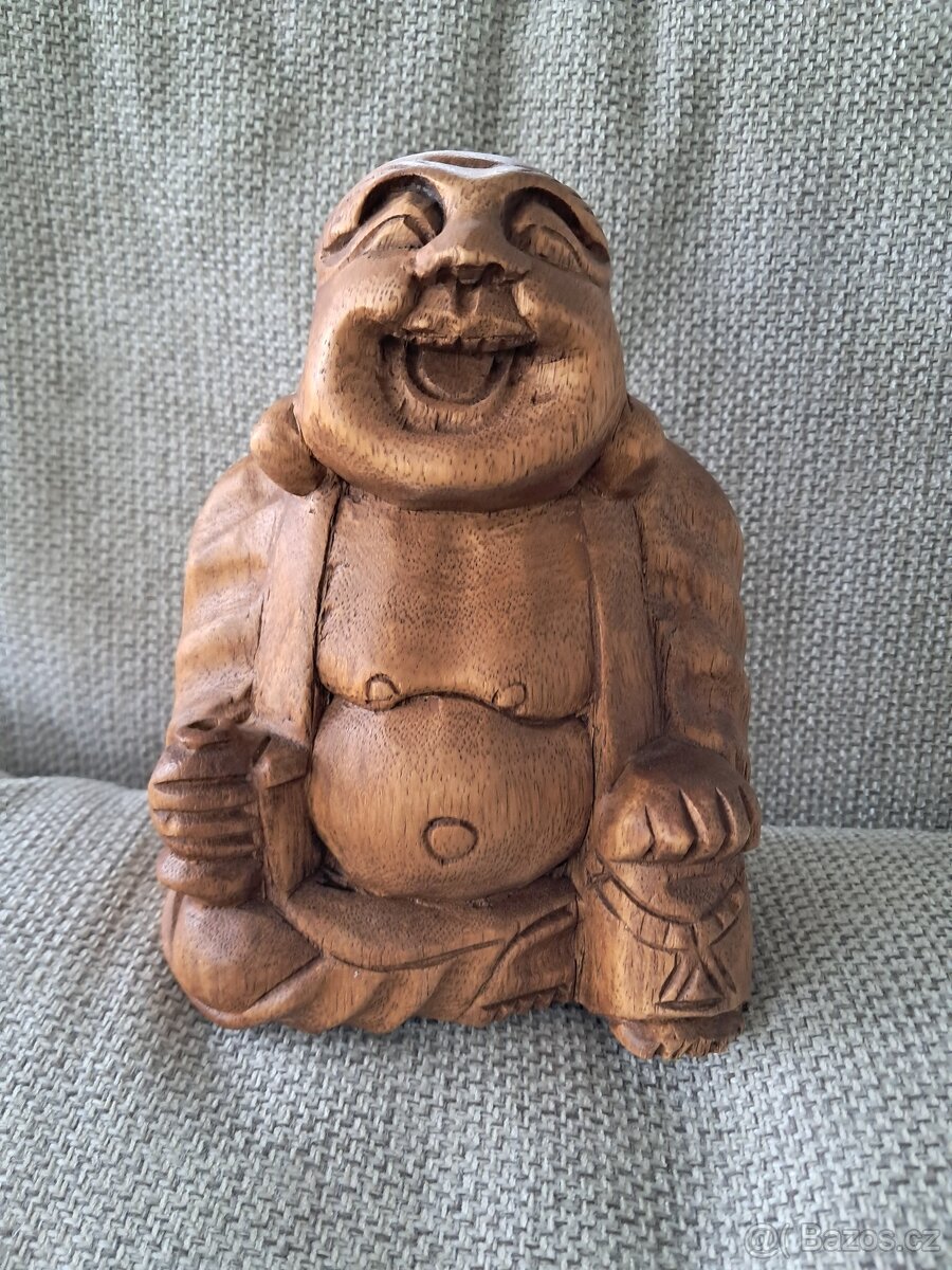 Dřevěný buddha, 100% stav. Výška 19 cm.