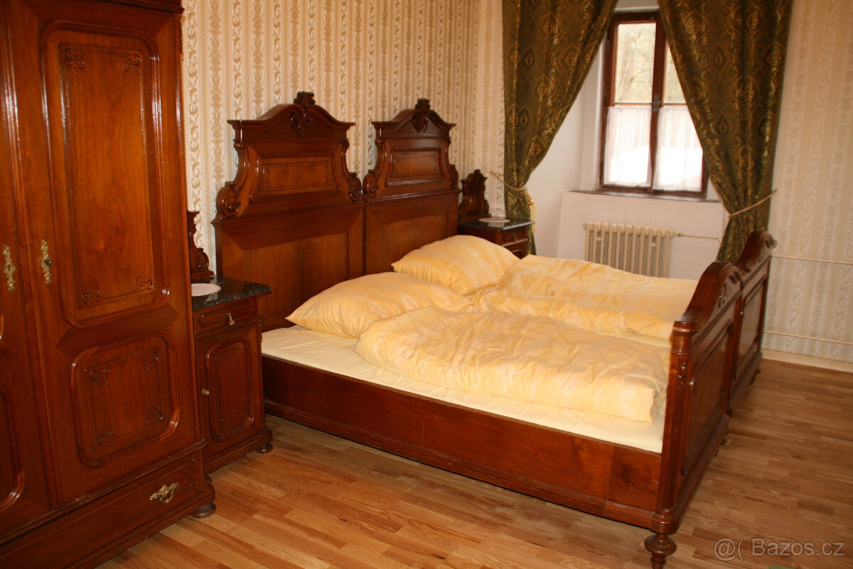 Originální starožitná ložnice - sestava. - [14.4. 2026]Prodám originální, na zakázku vyráběnou starožitnou ložnici z masivního dřeva : 2x postele + 2x noční stolek s nástavbou + toaletka s křesílkem + 1x šatní skříň s věšákem + 1x šatní skříň s policemi + oválný stolek s 2 křesílky.Vše v původním, velice ...