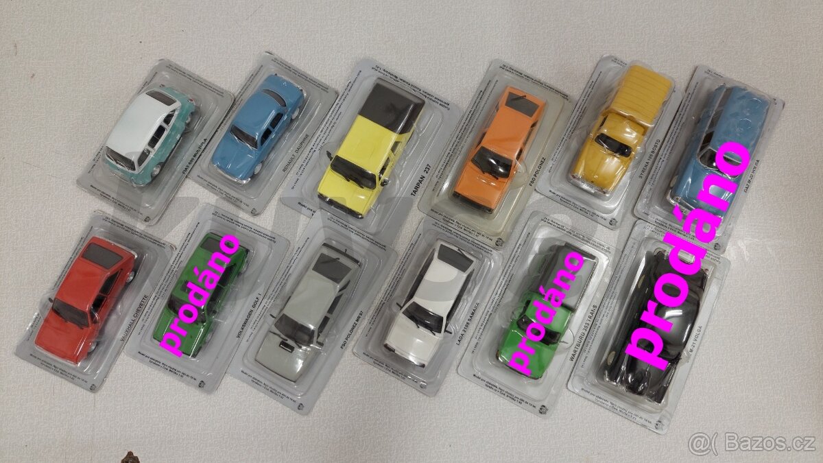Prodám kovová autíčka v měřítku 1:43, všechny jsou kompletní, nepoškozená včetně časopisu s popisem skutečného vozidla. Nemám na ně místo.