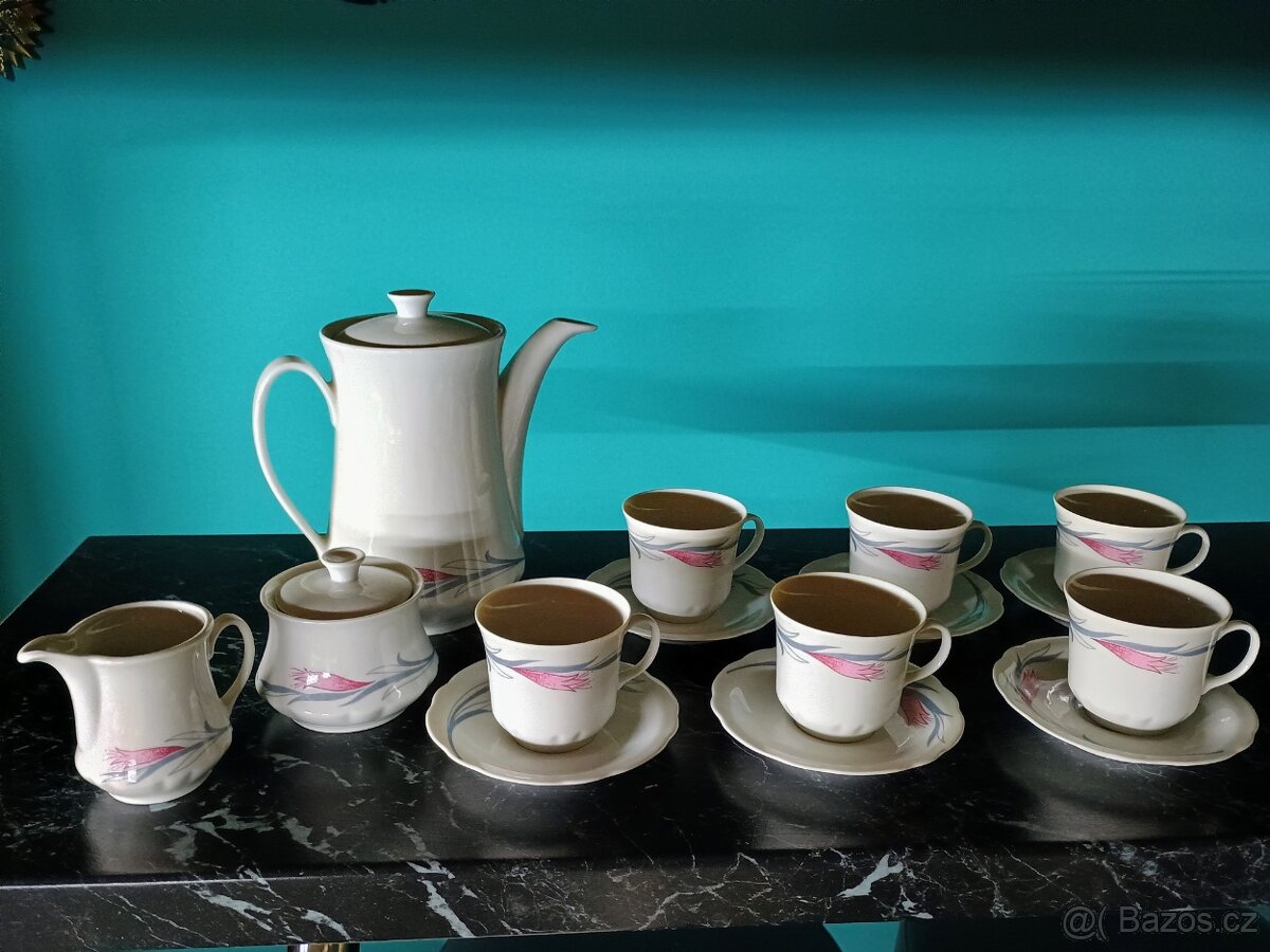 Porcelánová kávová/čajová sada - [17.4. 2026]Prodám retro porcelánovou kávovou soupravu s jemným květinovým dekorem.