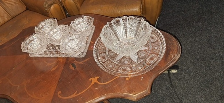 Prodám křišťálový servis, misky každá 500 Kč, váza 1000 Kč, mísa 1500, tác 1500