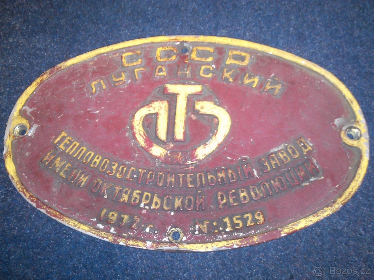 sergej , v.č. 1529 z roku 1972, podle databáze na www.sergeje.bilysklep.cz/…ace je to štítek z lokomotivy T679.1 pořadového čísla 409, která byla zrušena v roce 1993.