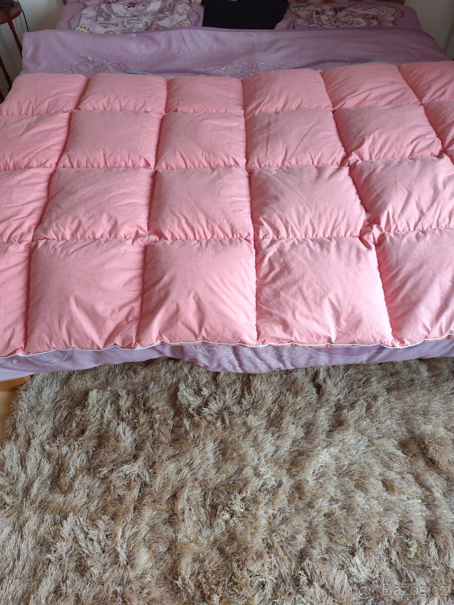 Deka plněná peřím, dva kusy, šité na zakázku, šířka 127 cm a délka 190 cm. Osobní odběr.