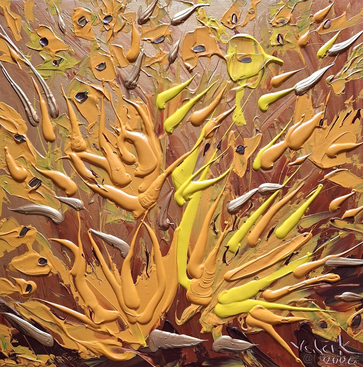 Kytice, akryl na plátně o rozměrech 70x70 cm, signováno.