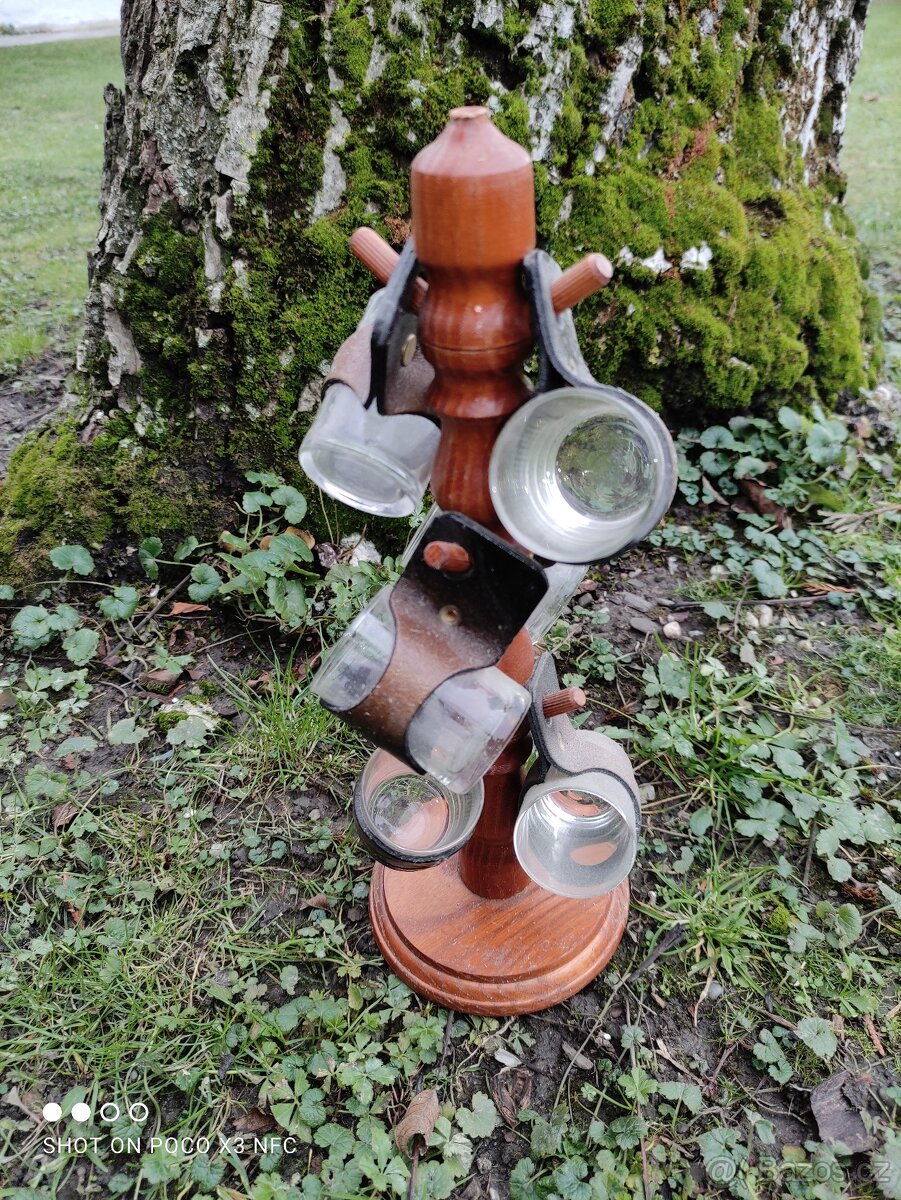 Prodám tuto zajímavě řešenou sadu šesti panáčků na stojanu v kožených úchytech. Pěkný stav. Vhodné třeba i jako dárek.