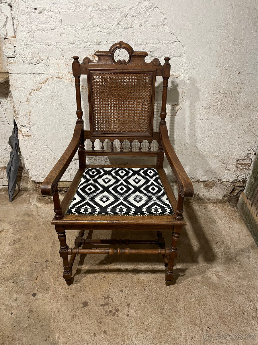 Honosné vyřezávané křeslo 100 let staré - [4.3. 2026]Nabízím toto honosné vyřezávané křeslo 100 let staré. Křeslo je v bytovém stavu a je bez červotoče. Lze ihned požívat. Krásně vyřezaváné se soustruženými sloupky. Ozdoba domácnosti. Rozměry jsou výška 118 cm, výška sedáku 50, hloubka 64 cm a šířka je ...