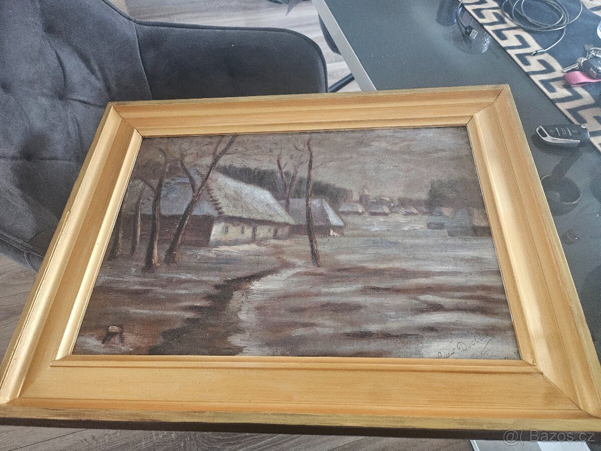 známi malíř Karel Schadt století. Podobné datované obraz pocházejí let 1919 („Zimní nálada(„Chalupy v zimě přesný