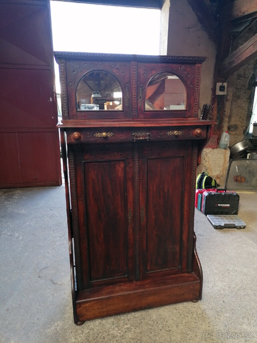 Sesesní starožitná ložnice dýha mahagon - [10.4. 2026]2xpostel 1xskříň 2x noční stolek 1x komoda .mramorové desky .restaurovaná .nutno vidět .foceno ve skladu
