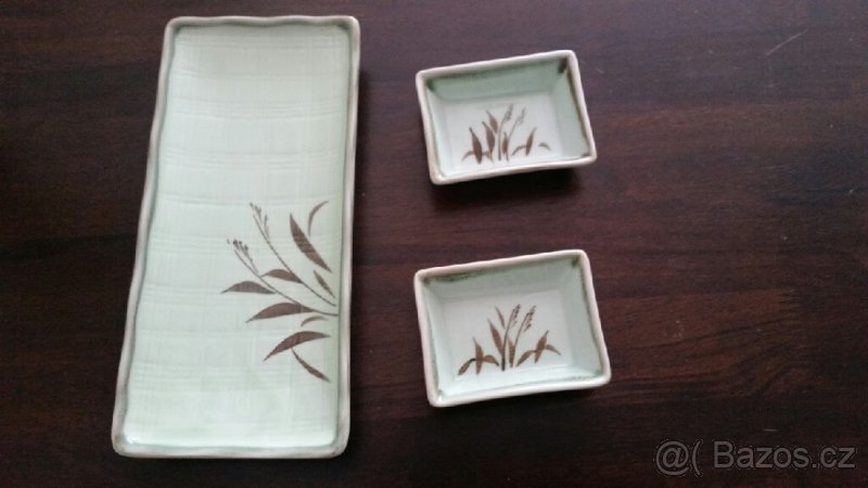 Obsahuje 4 kvalitní porcelánové misky a stylový bambusový podnos.