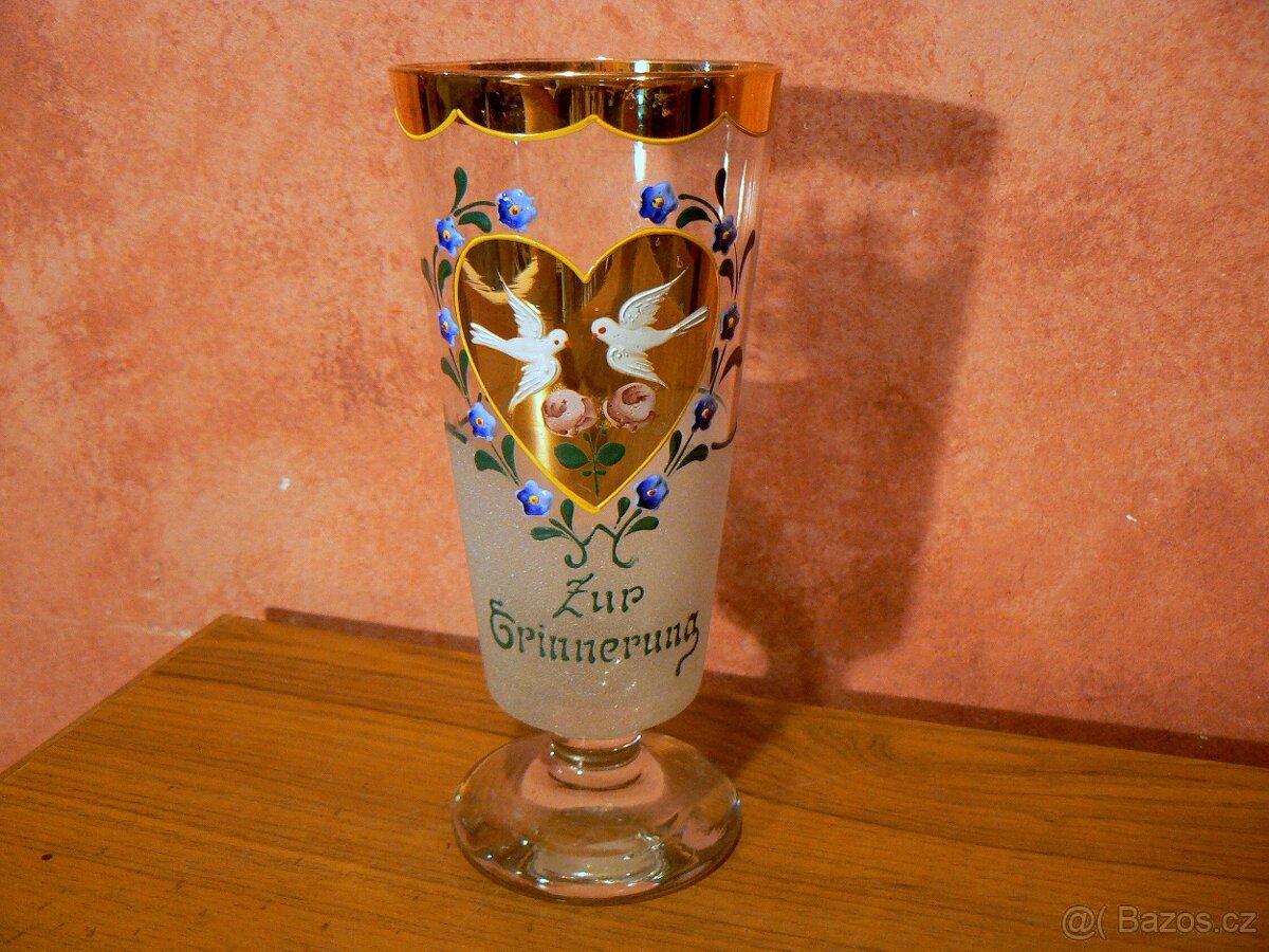 stará -velká sklenice z předválečného období-Na památku-ruční malba-velice pěkný- původní stav viz foto-bez poškození-výška 21 X 9 cm