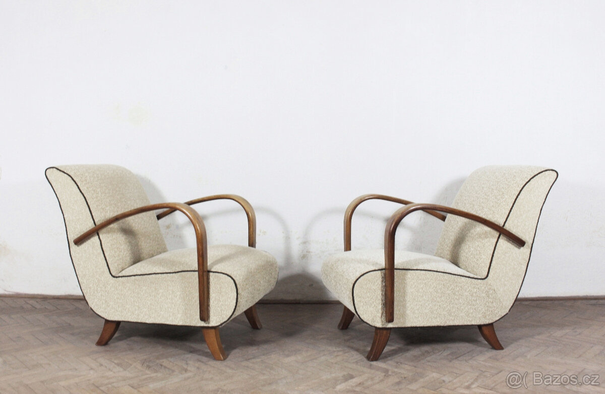ponúkam na predaj vzácne kreslá H-227,ktoré navrhol pre UP závody profesor Jindřich Halabala.kreslá majú nové čalúnenie,podrúčky zostali ponechané v opotrebovanom stave.osobné prevzatie v okrese Topoľčany.na prípadné dotazy rád zodpoviem.kontaktujte ma prosím cez formulár,číslo je vymyslené.ďakujem