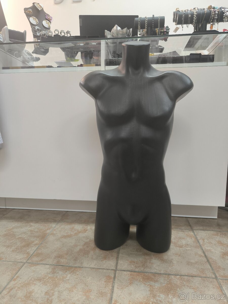 Prodám 1 kus pánského plastového torza v matné černé barvě. Torzo je anatomicky tvarované (včetně svalů a boků), což zajišťuje skvělou prezentaci sportovního oblečení, spodního prádla, plavek nebo klasických triček a mikin.