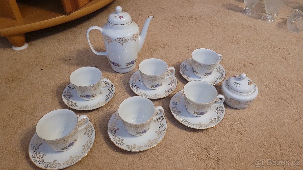 Set 6 šálku, podsalku, cukrovky a čajové konvice, bez vad.