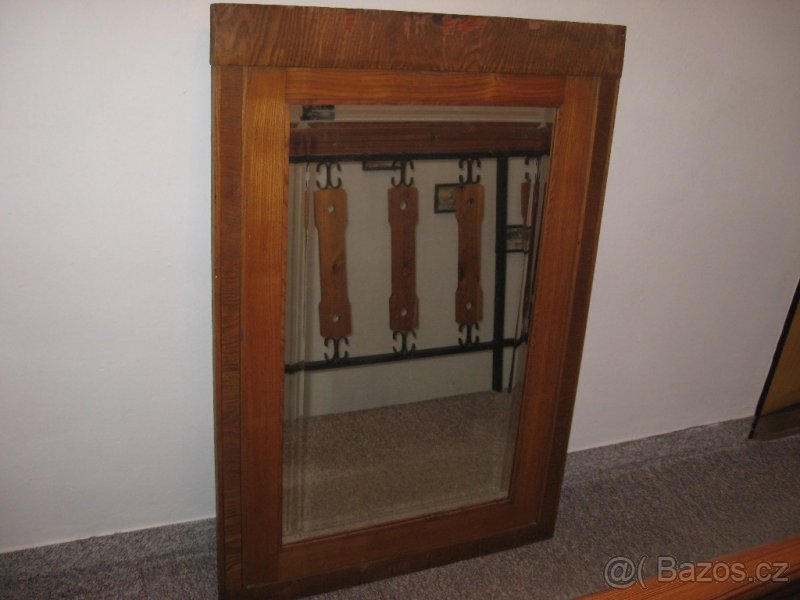 Prodám starožitné zrcadlo v původním stavu s fazetovým /zabrušovaným/ zrcadlem. Rozměr rámu 84x124cm, zrcadla 57x93 cm, možnost zavěšení.Vrchní část částečně oloupaná viz.foto