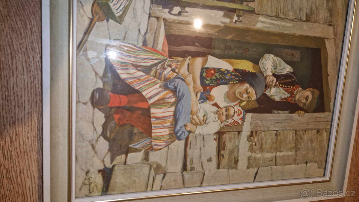 Roztomilý vintage obraz. Olejová malba. - [22.4. 2026]Roztomilý vintage obraz.