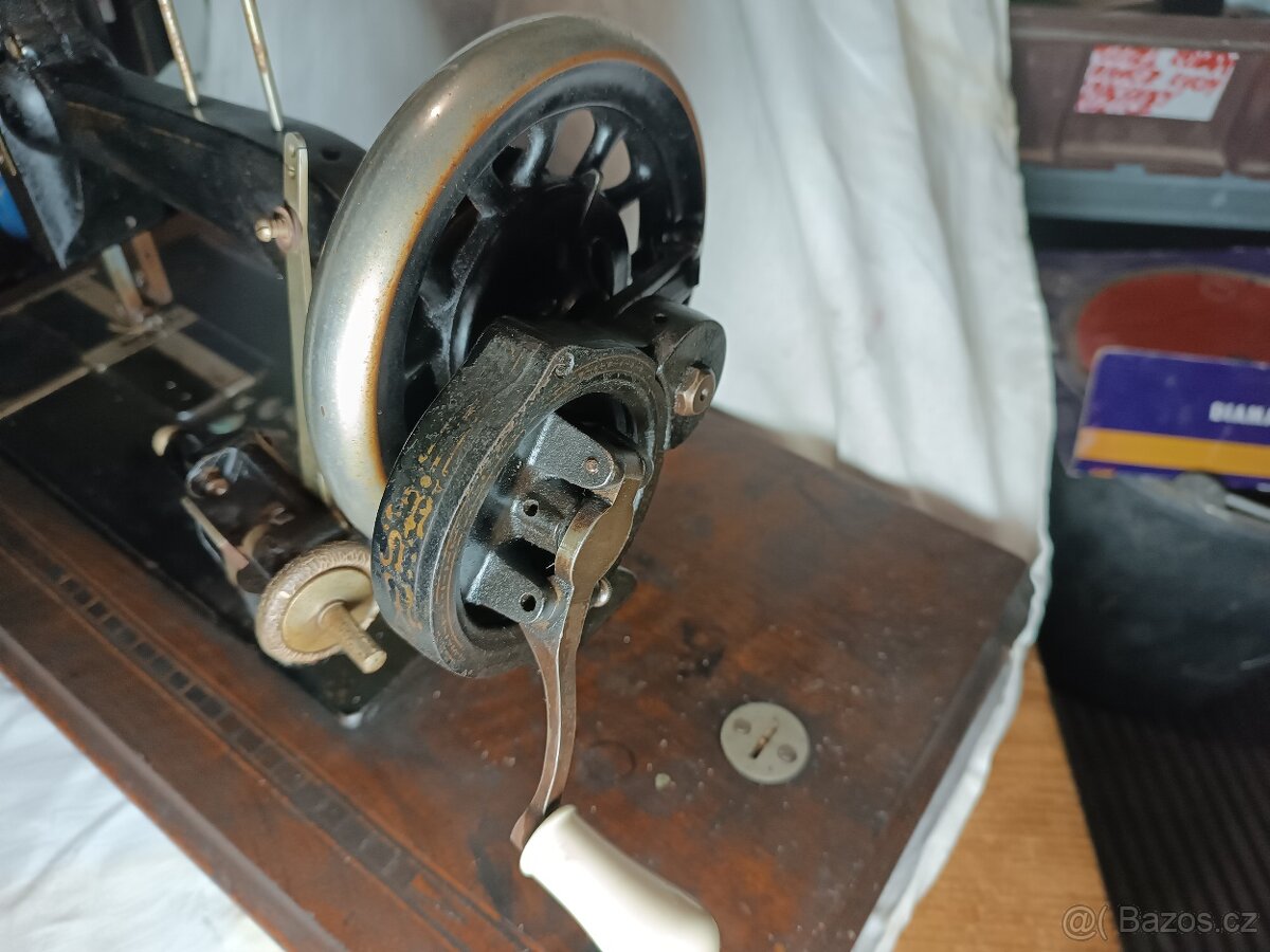 Šicí stroj na kliku, starožitný Strojní část v perfektním stavu, jemný a tichý chod, viz video Smýkaný člunek, samostatné foto