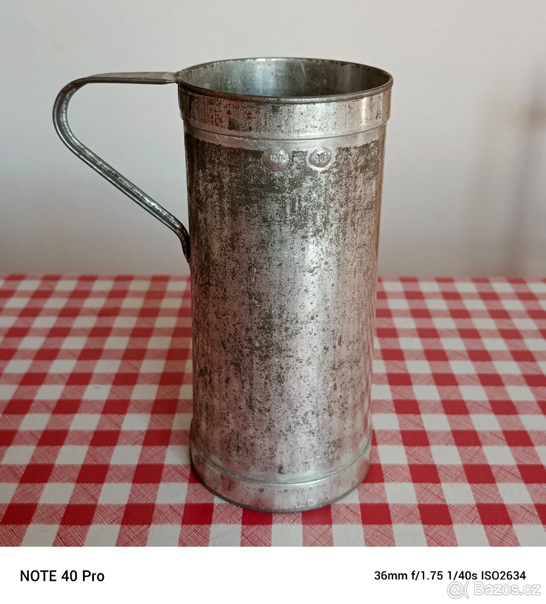 Prodám starožitnou cejchovanou odměrku s vyraženými puncovními značkami, patina odpovídá stáří.