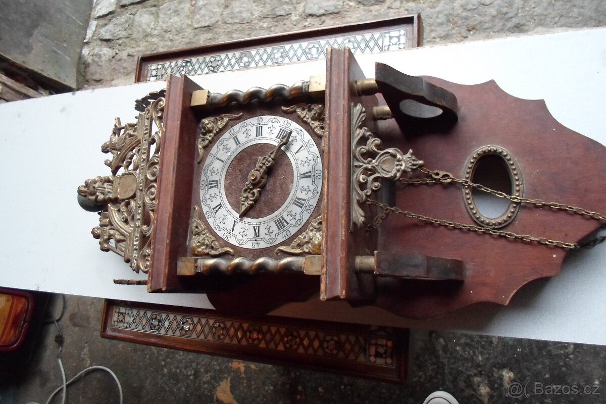 Staré nàstěnné hodiny - pendlovky - [21.4. 2026]Prodám tyto staré pendlovky o rozměrech 75x37x13cm. Nefunkční mechanismus.
