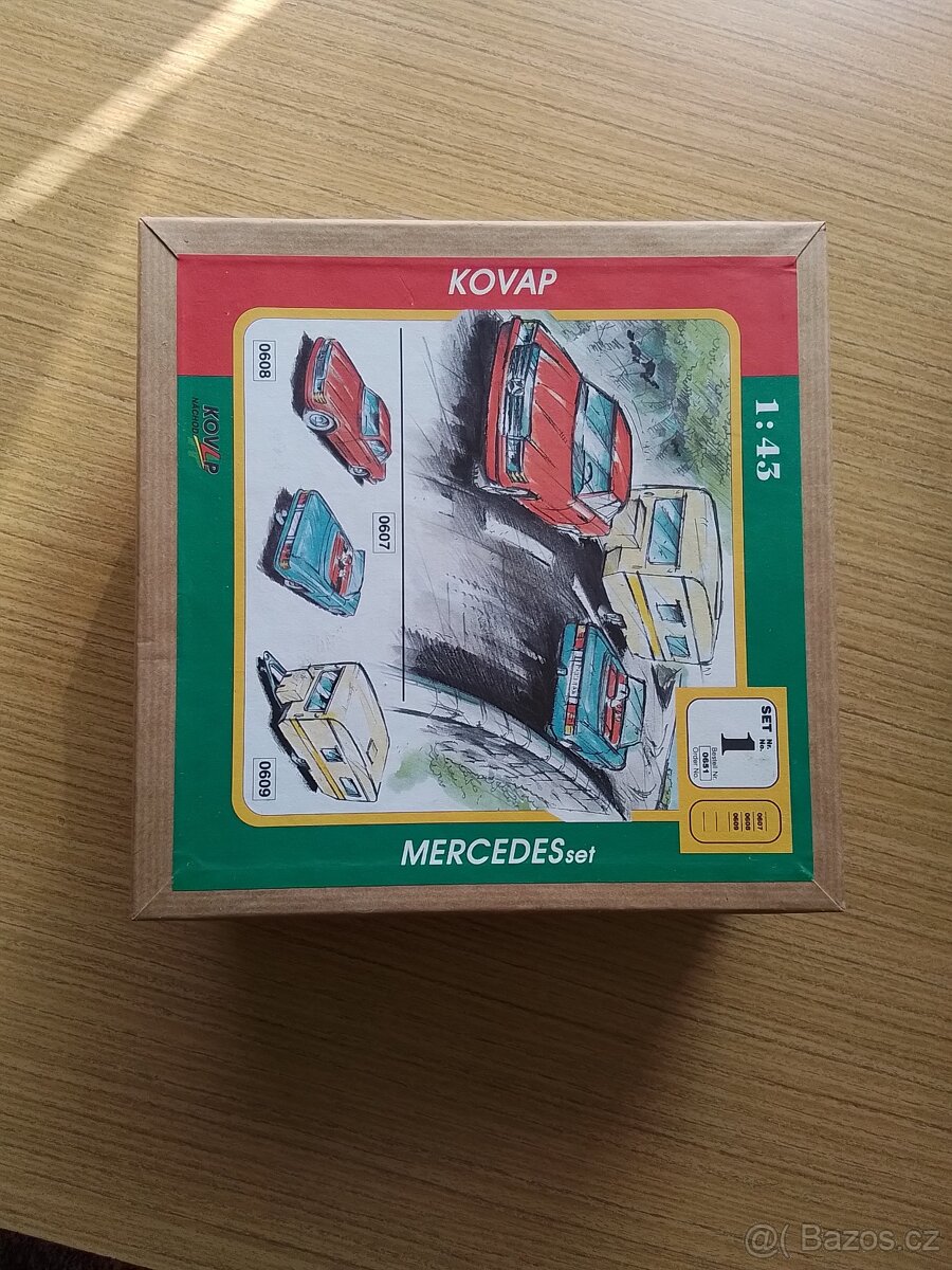 Nabízím k prodeji novou, nepoužitou sadu plechových modelů Mercedes-Benz od firmy KOVAP, které jsou ikonou tradiční české výroby.