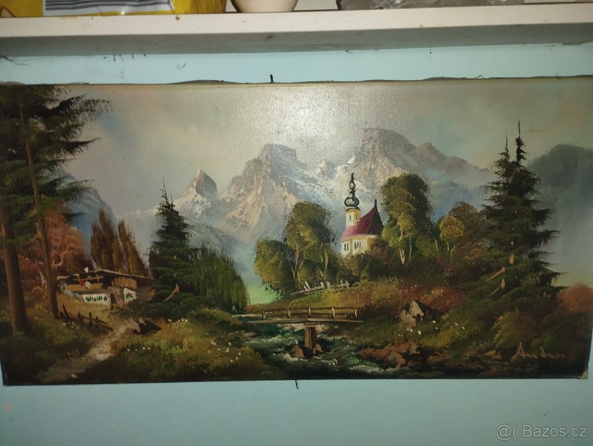 Prodám krásnej obraz na plátně krajina .40 léta .citera ..vše originál .okres Plzeň