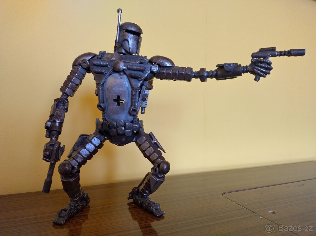 Soška svařená z různých průmyslových dílů, autor, muž z lidu.
