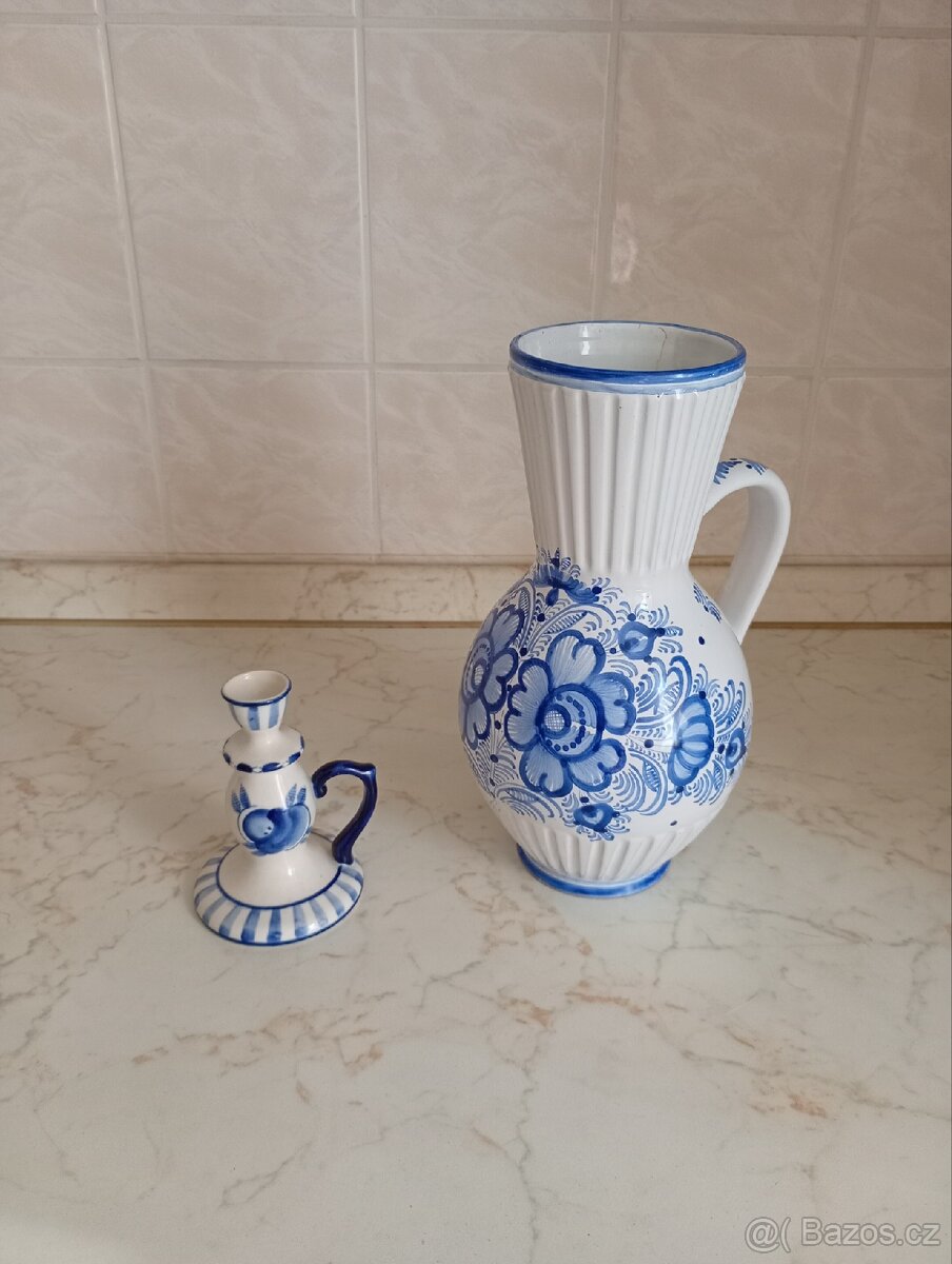 Nabízíme k prodeji pěkný porcelánový džbán, svícen a ozdobný talíř, vše pěkné, neponičené. Cena za celek 490 Kč ,možno i jednotlivě.