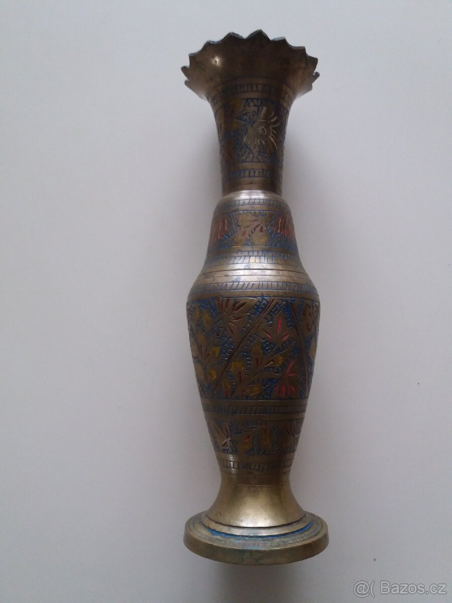Prodám krásně zdobenou starou mosaznou vázičku,výška 20,5 cm,cena 400Kč