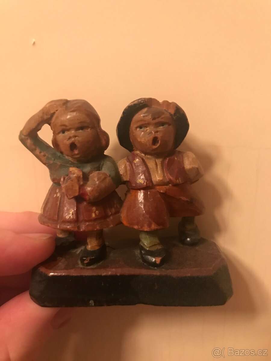 prodej starořitné řezby dřevěných sošek původní barva výška 6,5cm délka 7cm ašířka 3cm