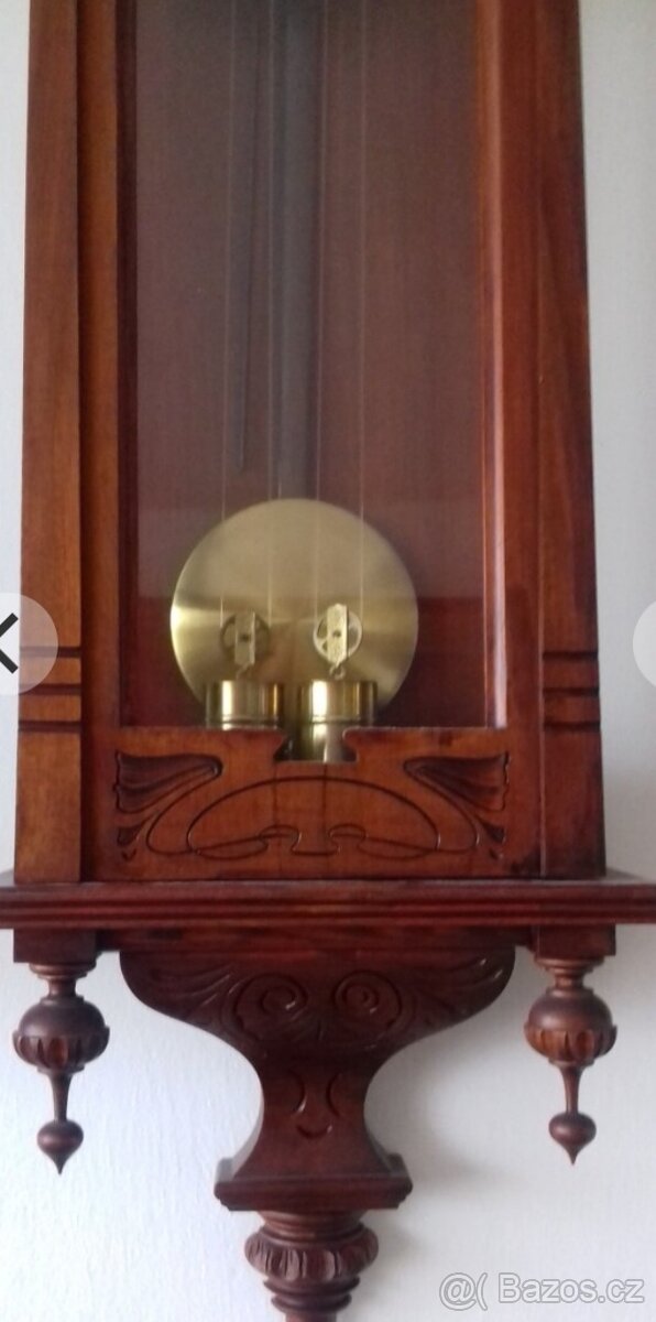 Starožitné nástěnné hodiny - [28.4. 2026]Prodám nástěnné pendlové hodiny dvou závažové zachovalé v pěkném stavu funkční výška 130 cm šíře 35 cm odbíjí v celou a v půl